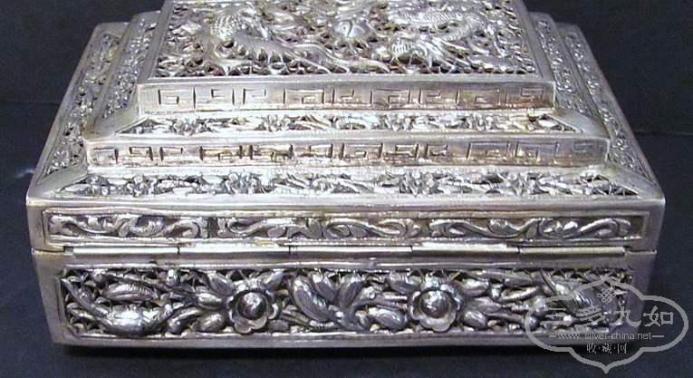 清中期飘流到美国一只保存完好的具有广东镂雕刻制工艺含内壁的纯银观赏杯 高12... |