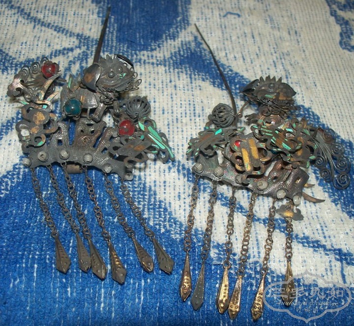 出私藏垒丝动物立体松鼠、狮子带宝步摇簪子发饰1套+4个凤 |